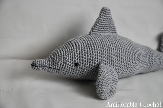 Embroider on the mouth. And then sew on the Dorsal Fin and Flippers.