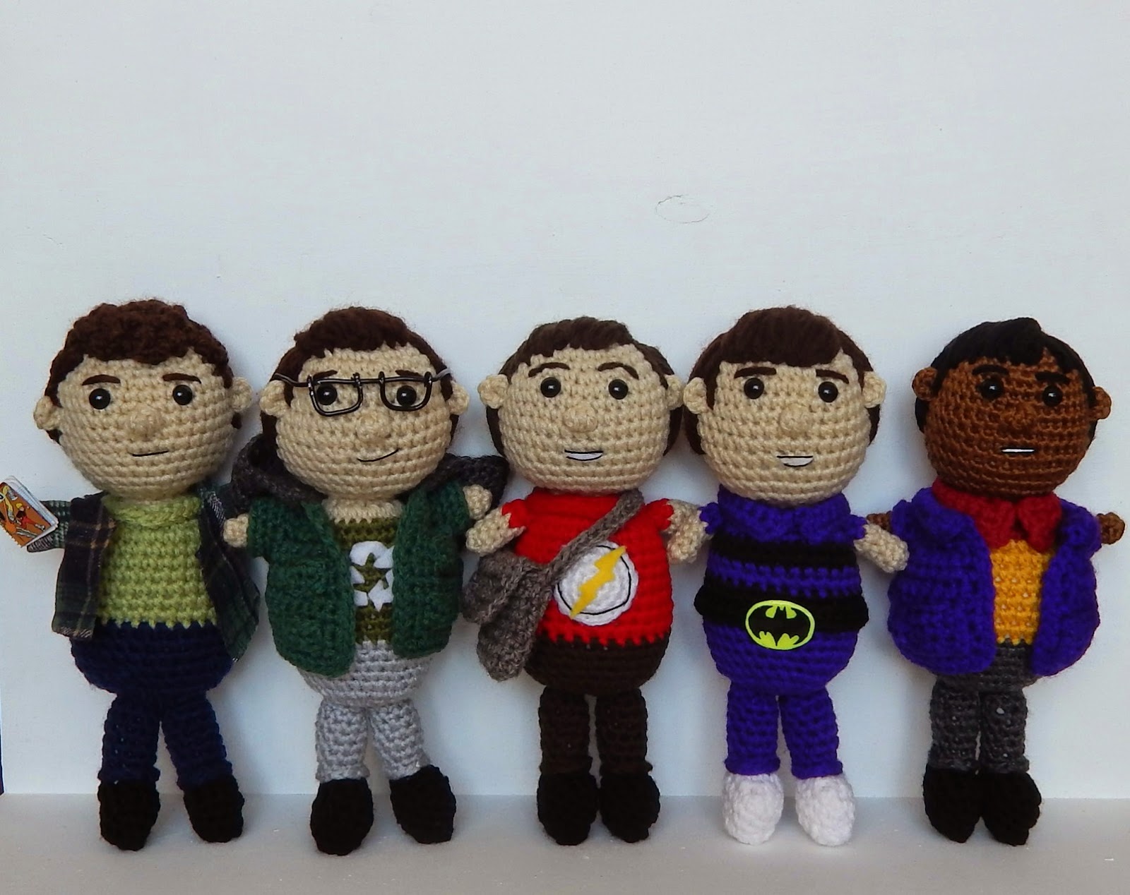 A while back I made most of the characters from The Big Bang Theory but I never got a chance to finish the entire set, so I decided to make them all again in mini form!! I was inspired by some of my childhood toys for this set...the little Fisher Price people that are all the same size just decorated differently. Sort of like the super cute Funko Pop Dolls too. So basically all of the dolls are created the same way and they are the same size you just decorate them differently, excluding the Ladies who are all wearing skirts so those patterns are a bit different.